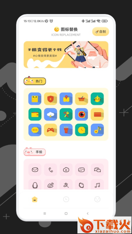 1.能够进行随心挑选个性的相关热门手绘图标样式,同时也能够进行专属自定义的进行更换相关喜好的图标内容。