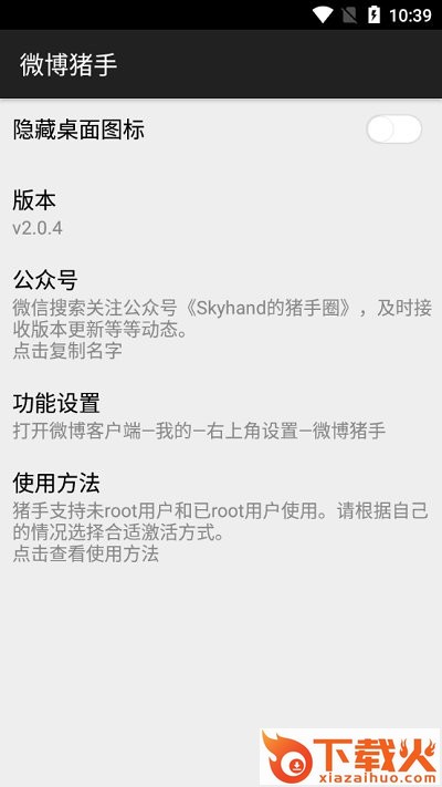 隐藏图标,隐藏微博图标,可以从模块管理器或微博设置中打开猪手设置。
