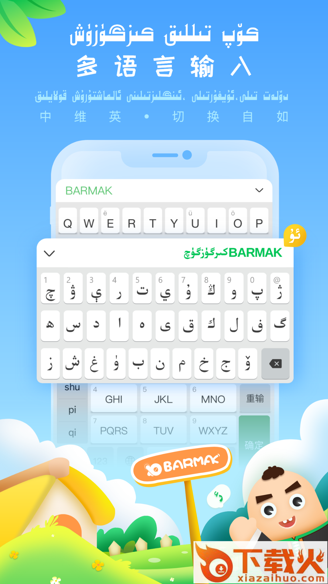 BARMAK输入法app是一款维语手机输入法软件,软件支持维语,汉语,英语,支持维汉互译,还拥有智能语音输入等等,可以帮助用户更好的手机打字输入。