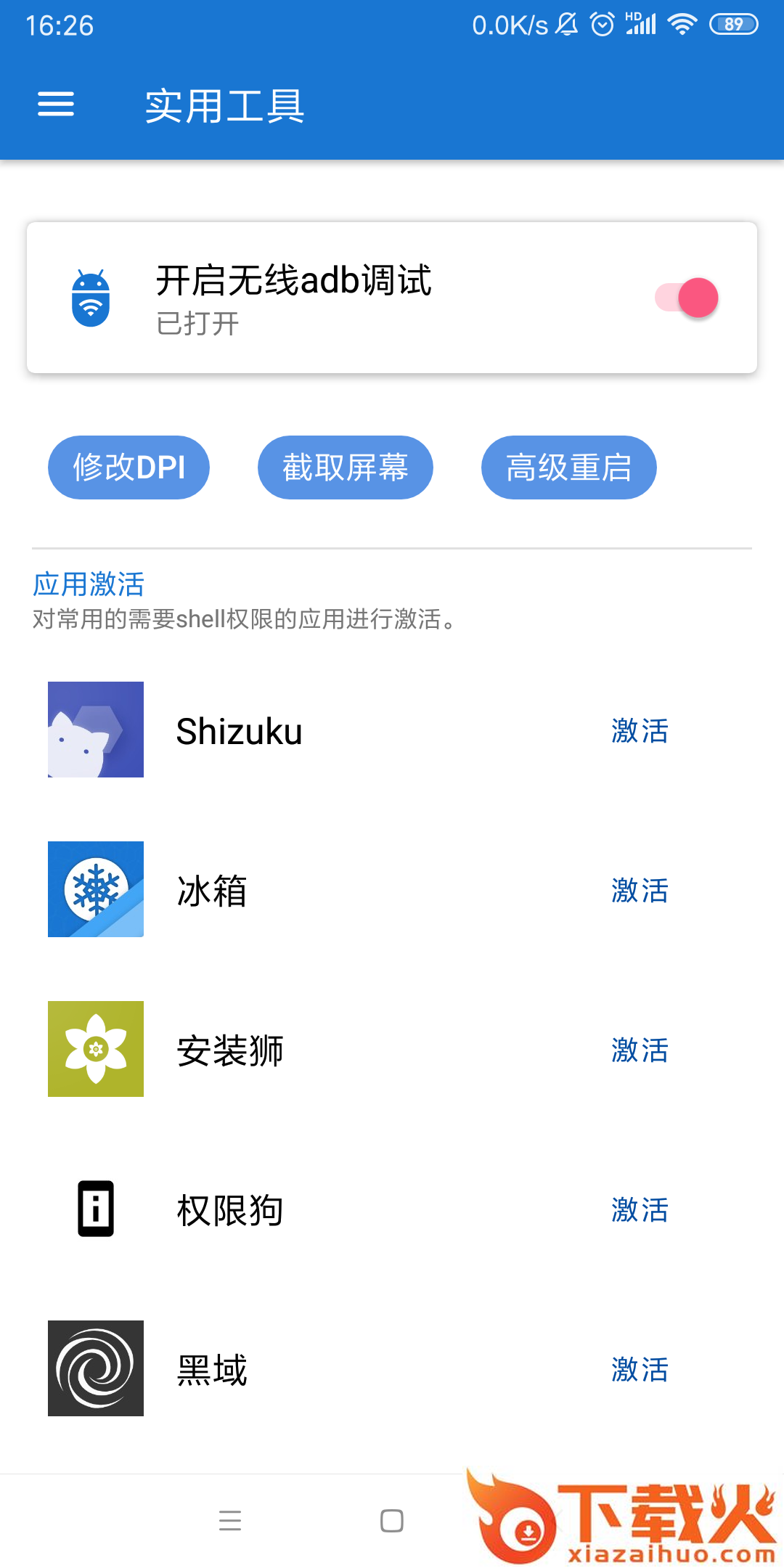 对一些需要ADB权限的APP进行激活,目前支持Shizuku、安装狮、冰箱、黑域、权限狗;