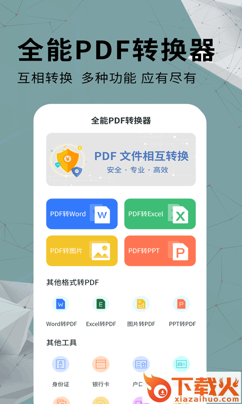 全能PDF转换器是一款集PDF转Word、PDF转Excel、PDF转图片、PDF转PPT,图片转PDF,Office文档转PDF、图片文字提取识别等功能于一体专业高效的PDF转换器,稳定的性能和专业的文档处理系统是您必不可少的随身办公神器!