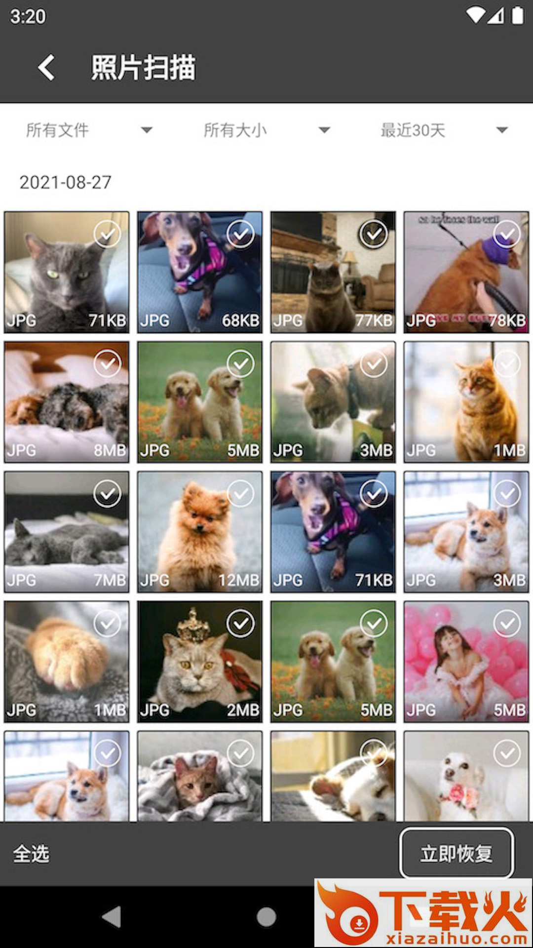 支持恢复微信、qq、相册等软件的图片、视频、音频、压缩包等各种文件数据恢复。