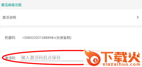 3、根据手机机器码,获取对应手机用于激活MyGesture高级功能的激活码,填写激活码,点击保存