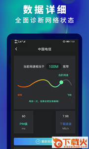 各种场景下的网络测速为一体的软件,测网速专业版,WiFi检测,宽带测速,游戏测速,电信测速、移动测速、WiFi管家,WiFi测速,手机网络测速;5G网速测速都能帮你实时监测到网络类型,一键测试当前网速的上传,下载,告别卡顿。