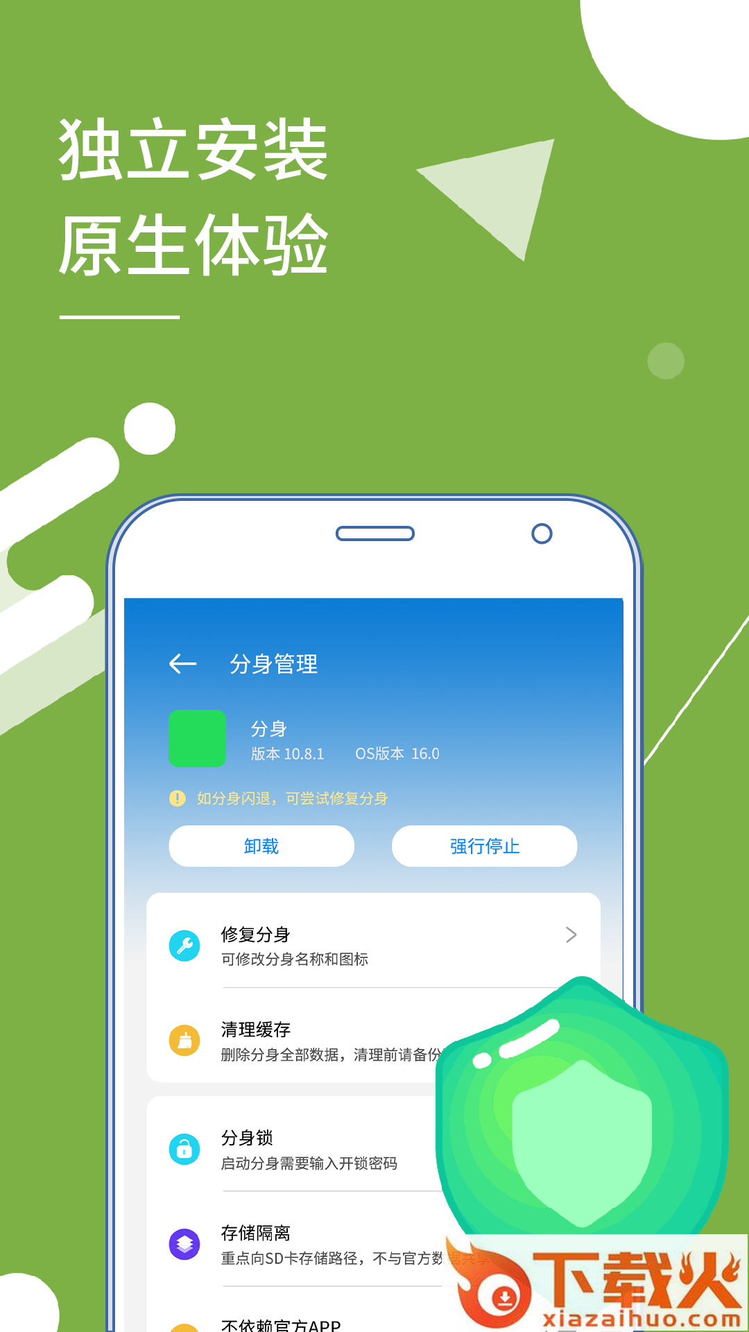 4.分身采用独立安装的机制,分身相当于安卓虚拟机,在虚拟机内挂载需要运行的应用来实现应用分身,其运行的目标应用均为官方正版,无需担心安全性、隐私泄露等问题;