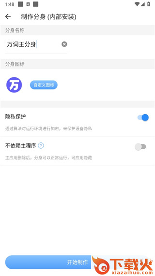 2.制作成功后,请勿删除本应用,版本比较旧的需要卸载重新安装,以免出现分身无法正常使用的情况,