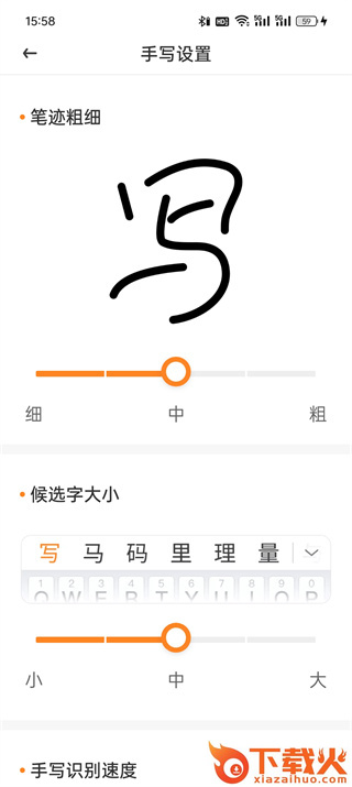 4、最后进入到手写设置的页面就可以调节字体粗细了;