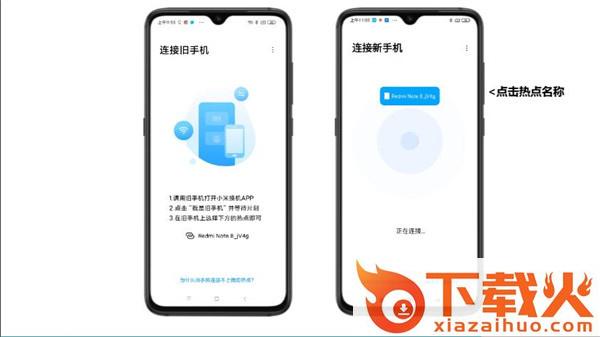 新版“小米换机APP”无需手动输入热点密码,请在旧手机上打开小米换机APP,点击我是旧手机,等待片刻即可在屏幕上看到附近新手机的热点,点击您要连接的新手机热点即可。