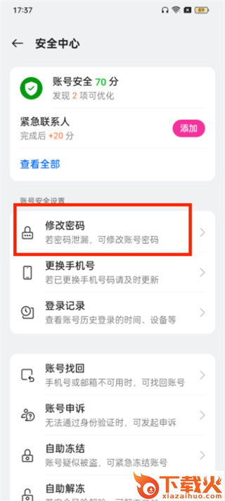 您可以在账号-登录与安全一重设密码,验证锁屏密码后重置您的账号密码。