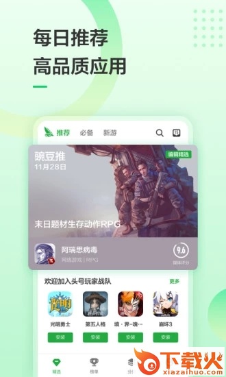 豌豆荚收录了超过 320 万款优质 Android 应用和游戏,以及 130 多家内容提供商提供的音乐、视频、电子书、壁纸和主题。让你的手机比你想象中更强大更好玩。