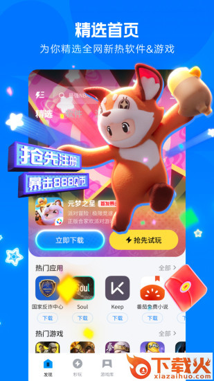 1、首先打开下载好的软件,进入软件后能够获取许多热门的游戏,点击喜欢的游戏进行下载体验;