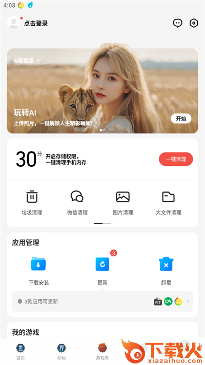 5、点击我的选项可以进入个人信息界面,在这里可以查看到许多有关自己的游戏内容,许多的文件内容可以选择清理。