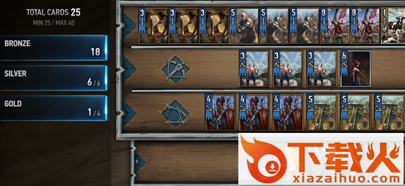 其中核心卡为近战的3个medic,还有3个5攻的(忘了名字),远程3个3攻的,攻城的3个4攻骑士,特殊卡最好保持一致。(忘记具体的卡牌名字 见谅)其他的卡都可以自己调整,但是最好不要带单张的卡,配合效果不好。