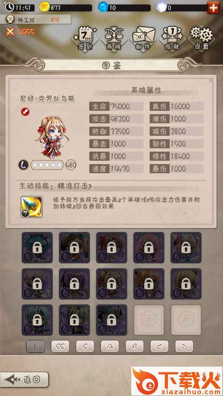 总共有十个不同的阵型,每一个阵型都有不同的战斗加成。需要玩家去选择合适自己英雄的阵型使用。阵型技能需要提升阵型的领悟值。