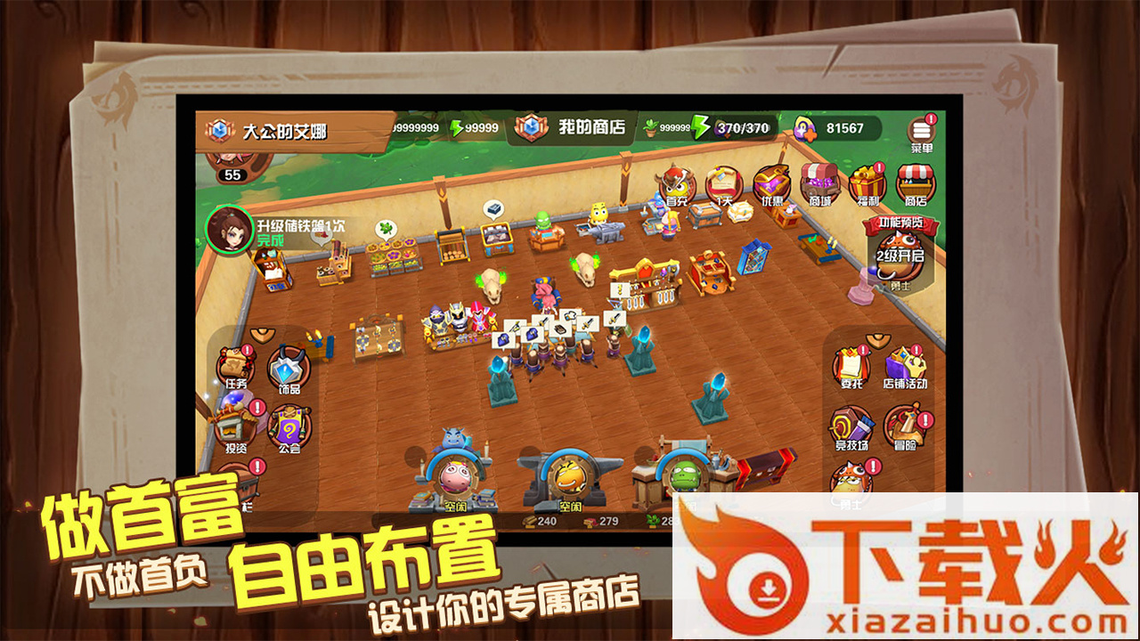 在MT世界中,你将经营一家店铺,为MT和他的伙伴们配备史诗装备,提升他们的能力。