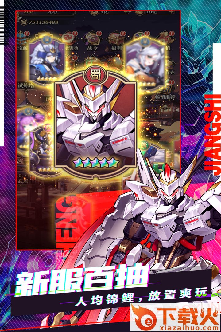 梦回三国,一场你没体验过的朋克机甲三国之旅即将启航! 《远征将士》是一款高颜值的放置卡牌回合制手游,完美融合了幻想与历史,为主公打造一个丰富而有趣的三国世界。游戏内玩法创新,养成资源都能返还继承,放心培养角色,一键零损换将。全系武将都能升至最高星级,只要主公们喜欢,TA就是最强之选!