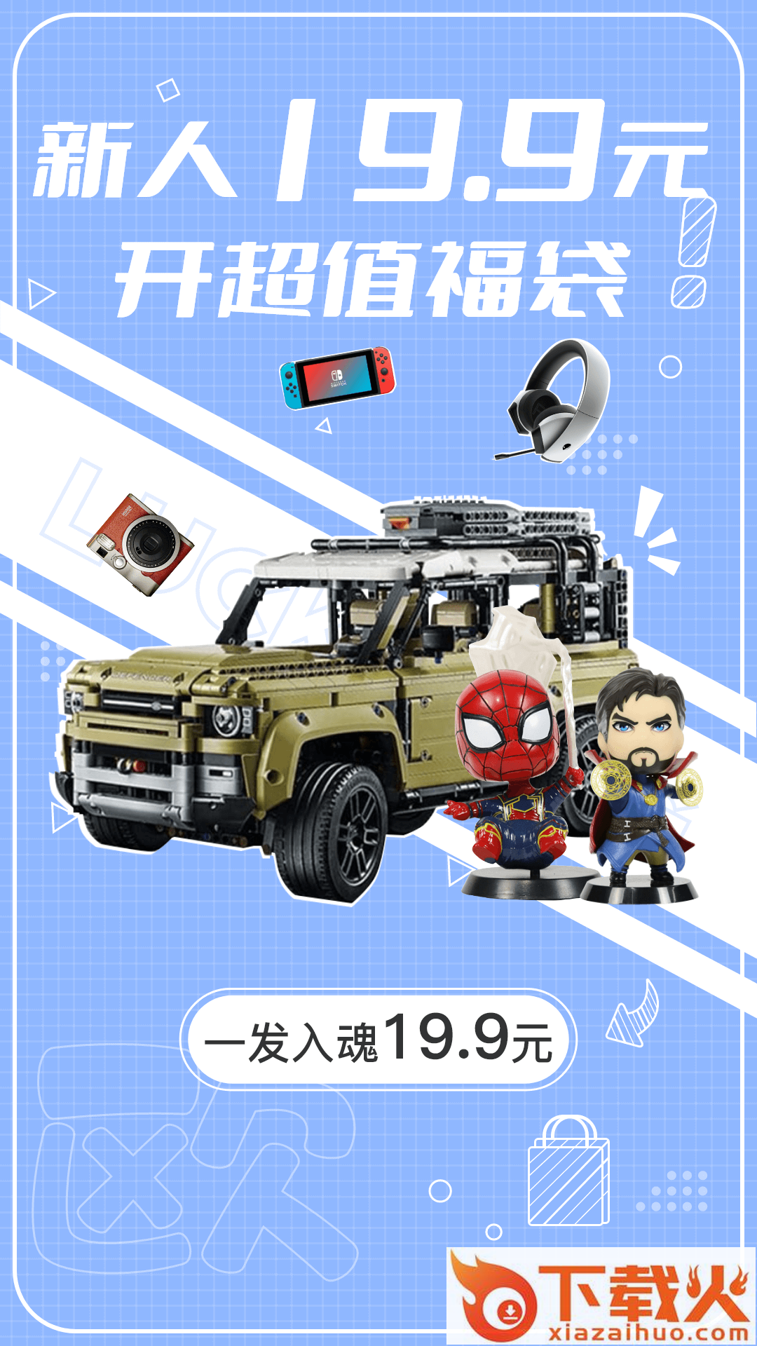 现在注册可立即参与新人专享价19.9元买福袋,快来玩吧,物超所值的新奇福袋,等你来拿噢~~