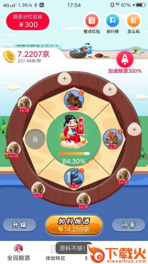 用户免费参与全民酿酒app晋级,通过收看广告获得酿酒的原料,原料越多,酿酒晋级越快,晋升到一定等级,即可获得全民酿酒app平台的广告收益分配奖励。利用碎片时间一起来玩玩吧!