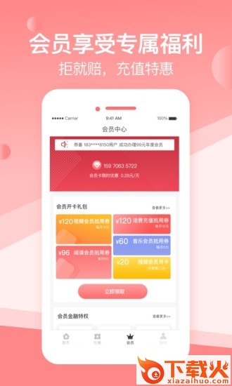 会员可以享受各大视频月卡、话费代金券、个人信息报告等权益