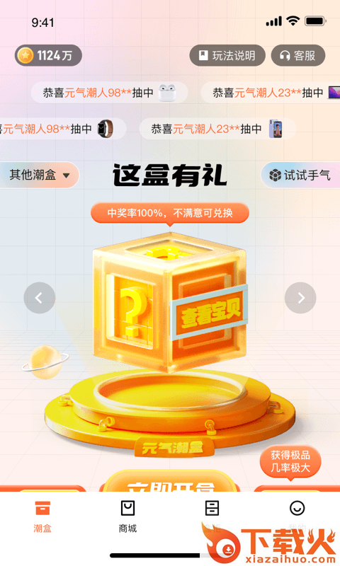 元气潮盒app是一款线上抽盲盒的软件,用户可通过软件体验线上抽盲盒的快乐,选择抽取直接线上开盒,抽到什么就是什么,包邮到家,惊喜多多,盲盒种类也很全面,数码、美妆、潮玩、潮鞋等等通通都有。...