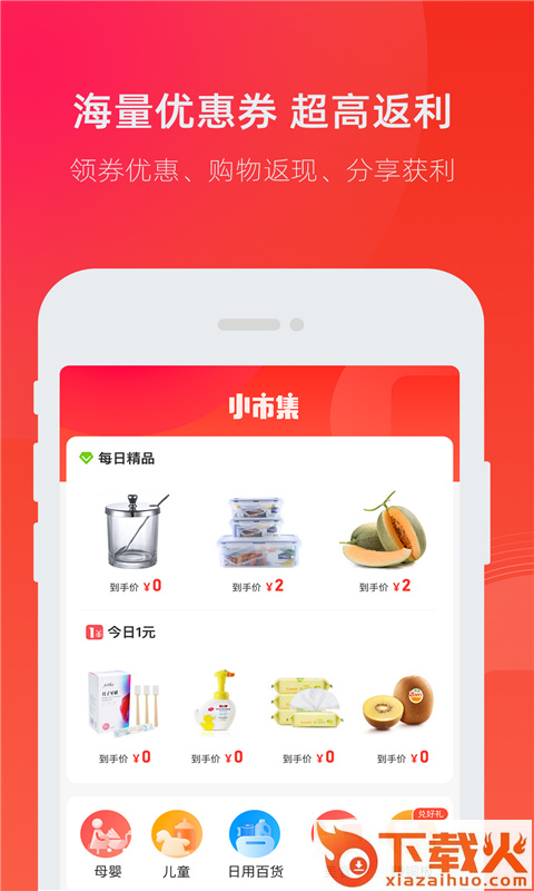 小市集是一款手机优惠购物软件,提供购物返现金、折扣商品、优惠信息等服务。依托互联网、大数据技术发展,为中国亿万妈妈群体打造出一站式“领券优惠、分享获利”的社交电商导购平台。