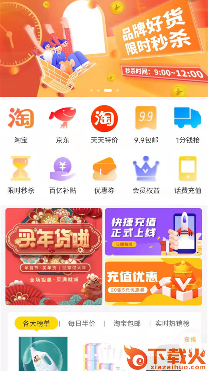 2、更有9.9包邮,1元秒杀,0元购等丰富购物体验,让你每天体验双11,购物不剁手 嗨到爆;