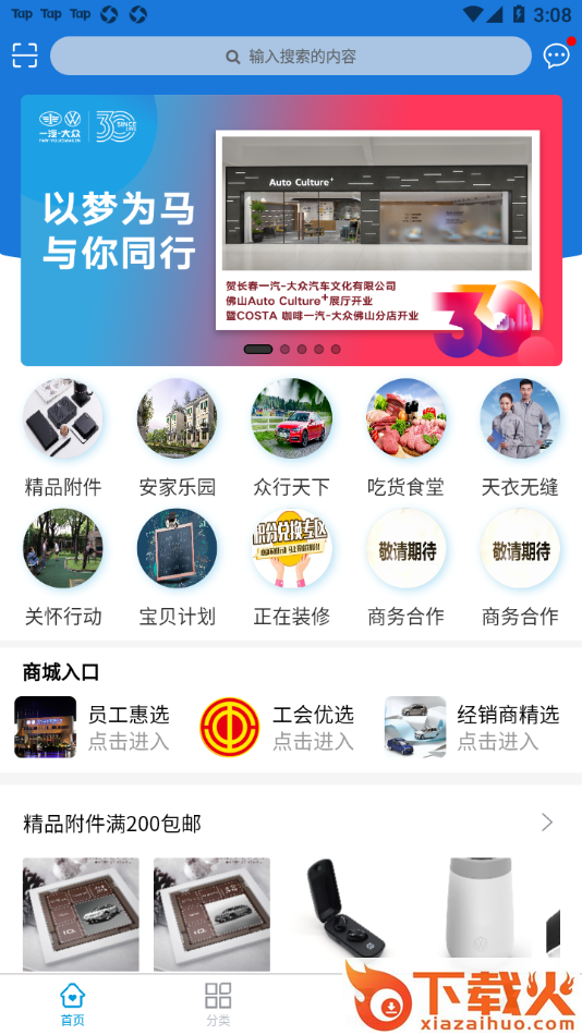 文化公司商城app是长春一汽-大众汽车文化有限公司推出的员工内购上传,商城拥有丰富的商品资源,品质优质,价格优惠,还拥有超多活动福利,觉得不错的朋友欢迎前来下载使用。