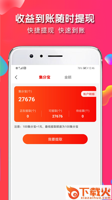 直接显示可提现金额,更有傻瓜式一键分享,操作简单,设计简洁。