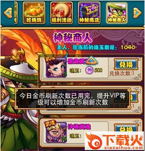值得一提的是,金币刷新貌似也是看vip等级的,不同等级拥有的次数不同,这个小编目前没有测试过具体数据,没金币啊!~