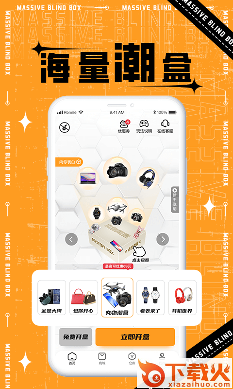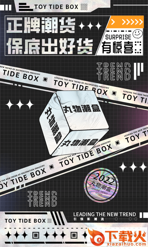 为用户提供线上盲盒开箱活动,各种数码、潮鞋、配饰、服装等各种潮玩好物抱回家。