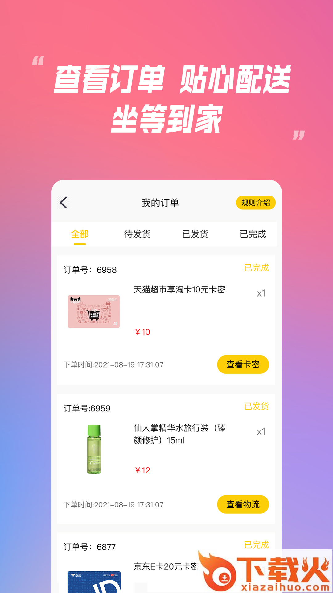 订单状态一目了然,查看未发货和已发货的订单状态,只要下单即刻全国包邮发货。