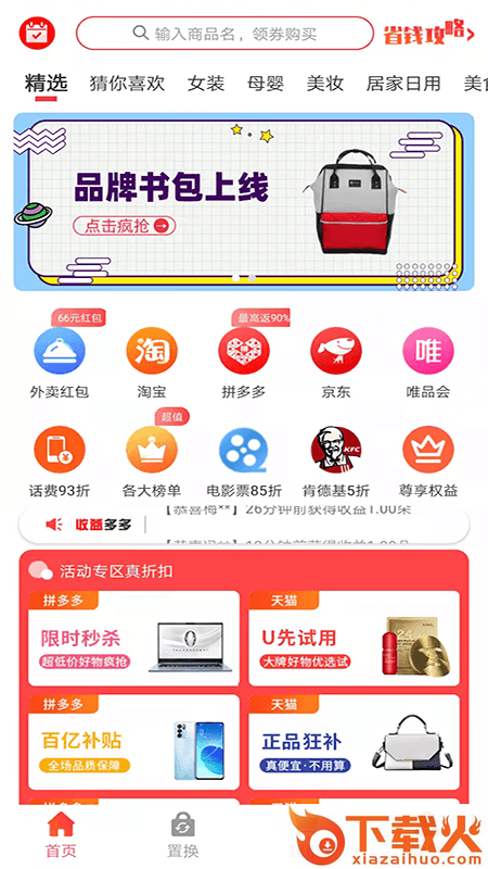 限时秒杀、名品折扣、品牌日、优惠券、红包,天天有福利