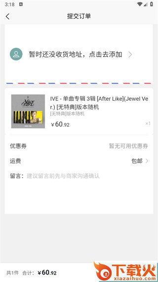 4、最后点击过后进入到提交订单的页面中添加好地址后点击【提交订单】进行付款即可;