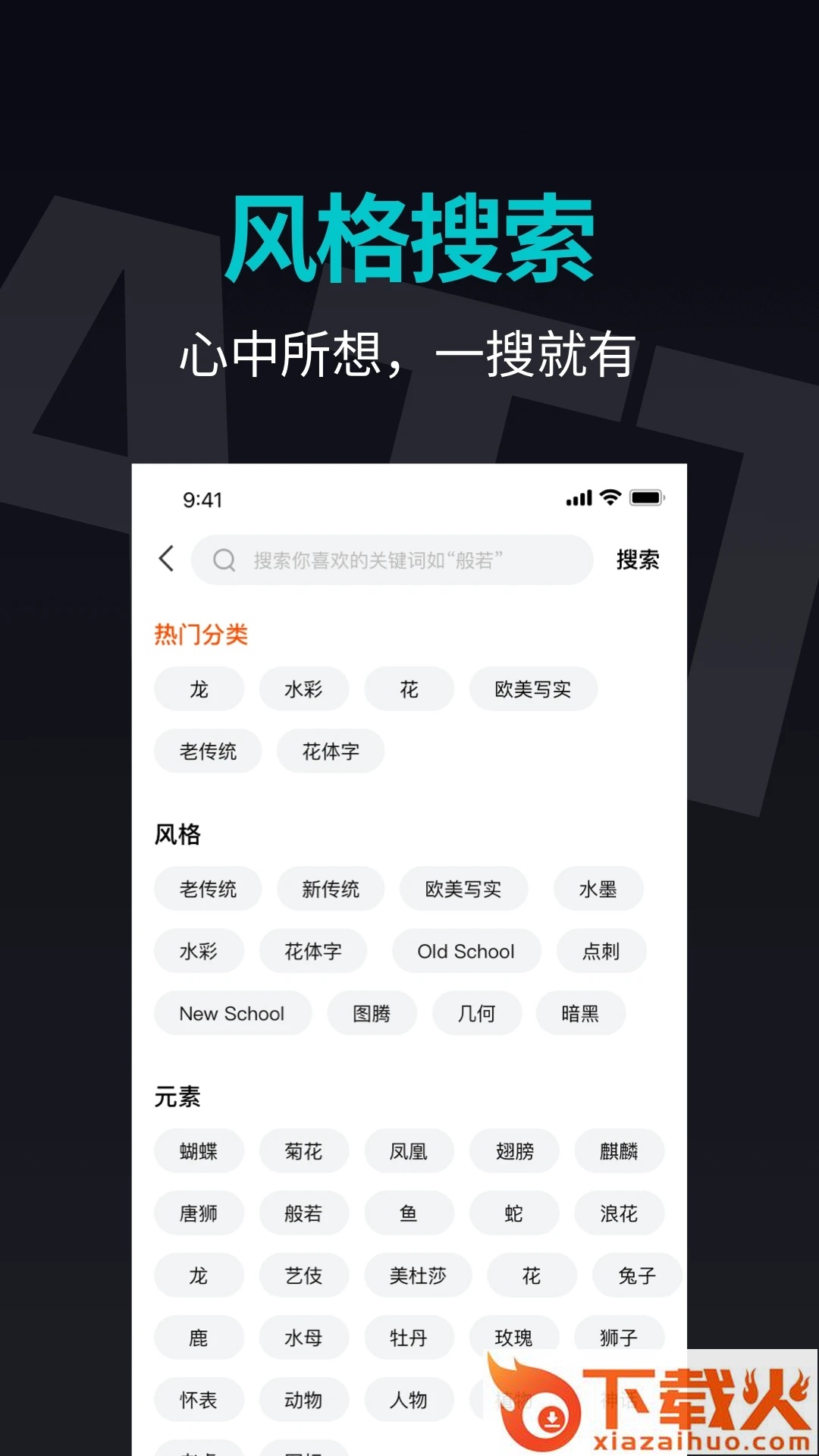 一键搜索自己需要的纹身手稿,欣赏和下载;