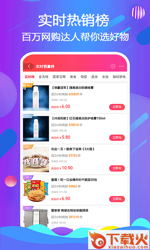 2、带来食品生鲜、个护美妆、母婴儿童、家用电器、手机数码、汽车用品、家居家装多品类的优质产品。