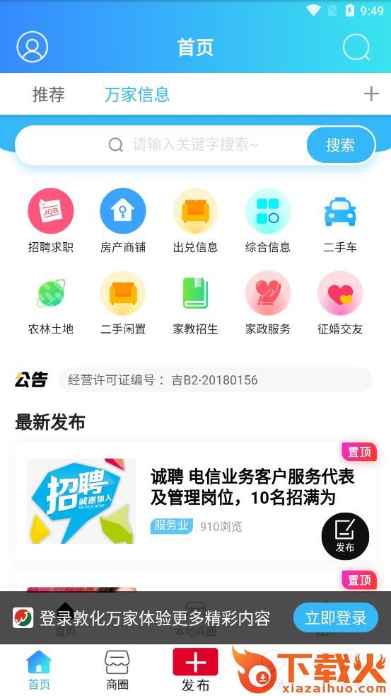敦化万家客户端是敦化市万家兴隆广告官方网站,用于向域内用户提供楼房买卖、人力、二手买卖、车辆交易等信息浏览及发布的平台。