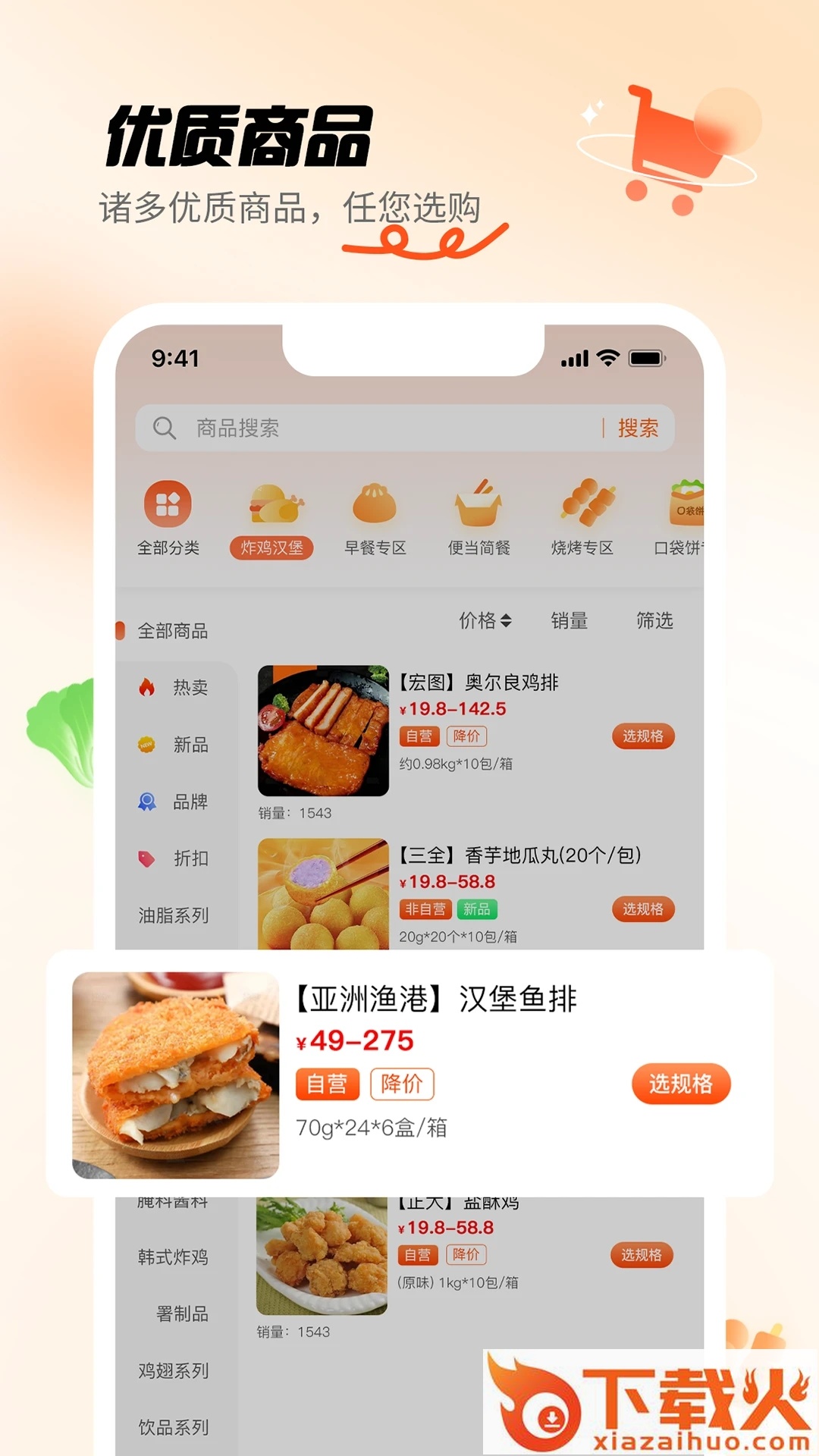 2.解决目前食材采购行业低效率的问题,商家不必再起早贪黑,通过平台随时随地下单。全品采购轻松搞定,省人、省事、省时间!专业长期的配送队伍,成熟的超近线路规划。为加盟商家提供最优质的免费配送服务。;