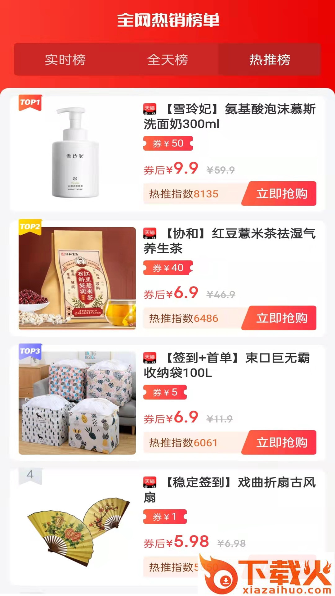 3、选品支持:每日精选海量超值优惠商品,包括【聚划算特卖】、【销量榜单】、【今日必抢】、【9.9包邮】等供你选择。