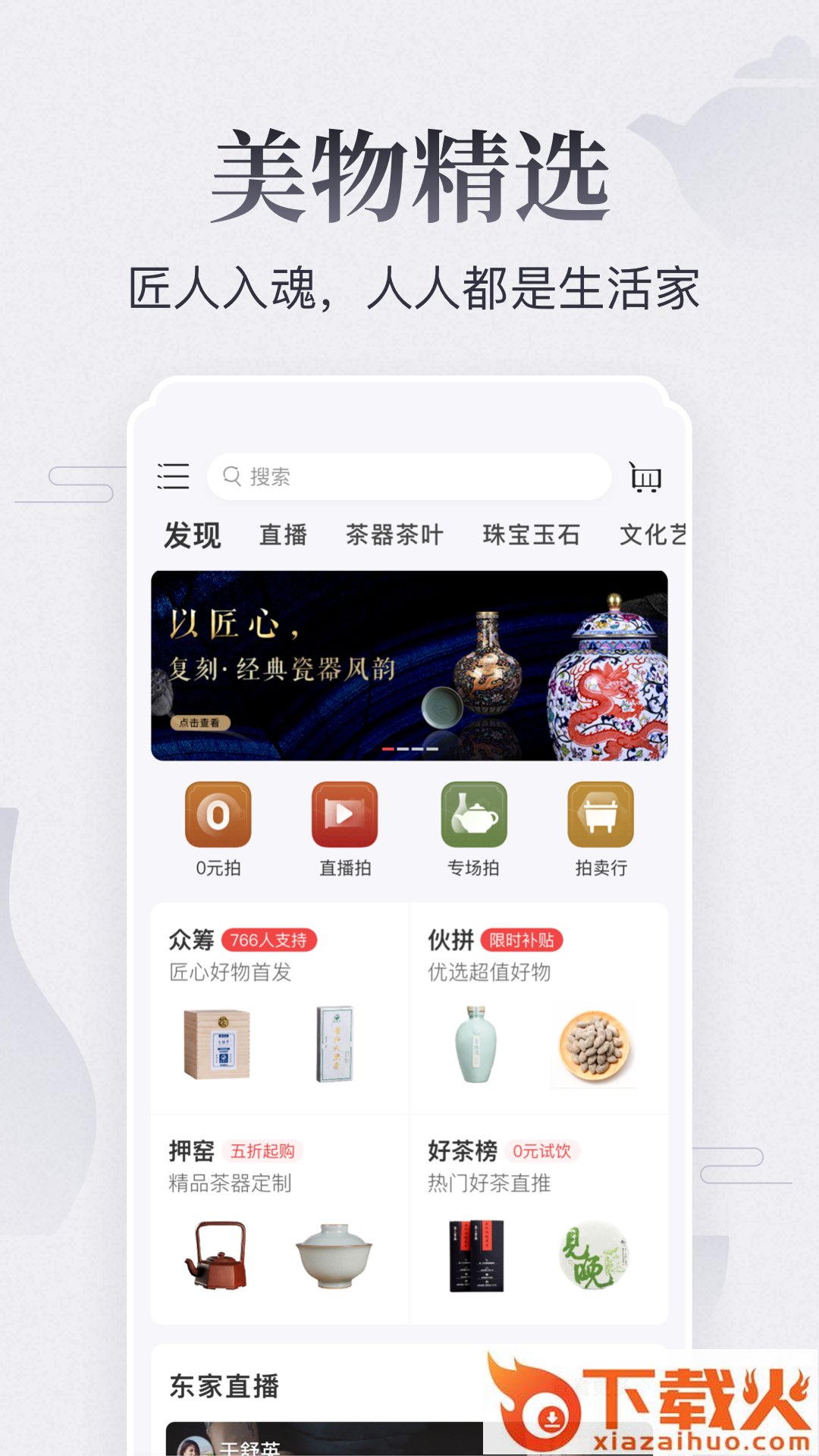 真选名匠好物,尤其在茶叶茶器、玉石翡翠、文玩家居等类目中,东家已成为品质优、选择多的平台。