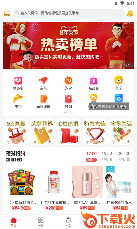 整合了各大主流电商平台优惠券资源,以及各大品牌店在线订餐本地优惠服务,