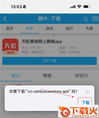 1、首先访问腾牛网,搜索进入天虹app下载界面