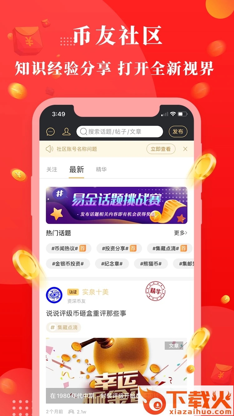易金在线App,是北京易金信德科技有限公司开发的移动电商平台,主要提供了纪念币、贵金属币以及退出市场的钞票等货物,该平台拥有精品荟萃、海量查询、迅捷返款、行业良心等特点。