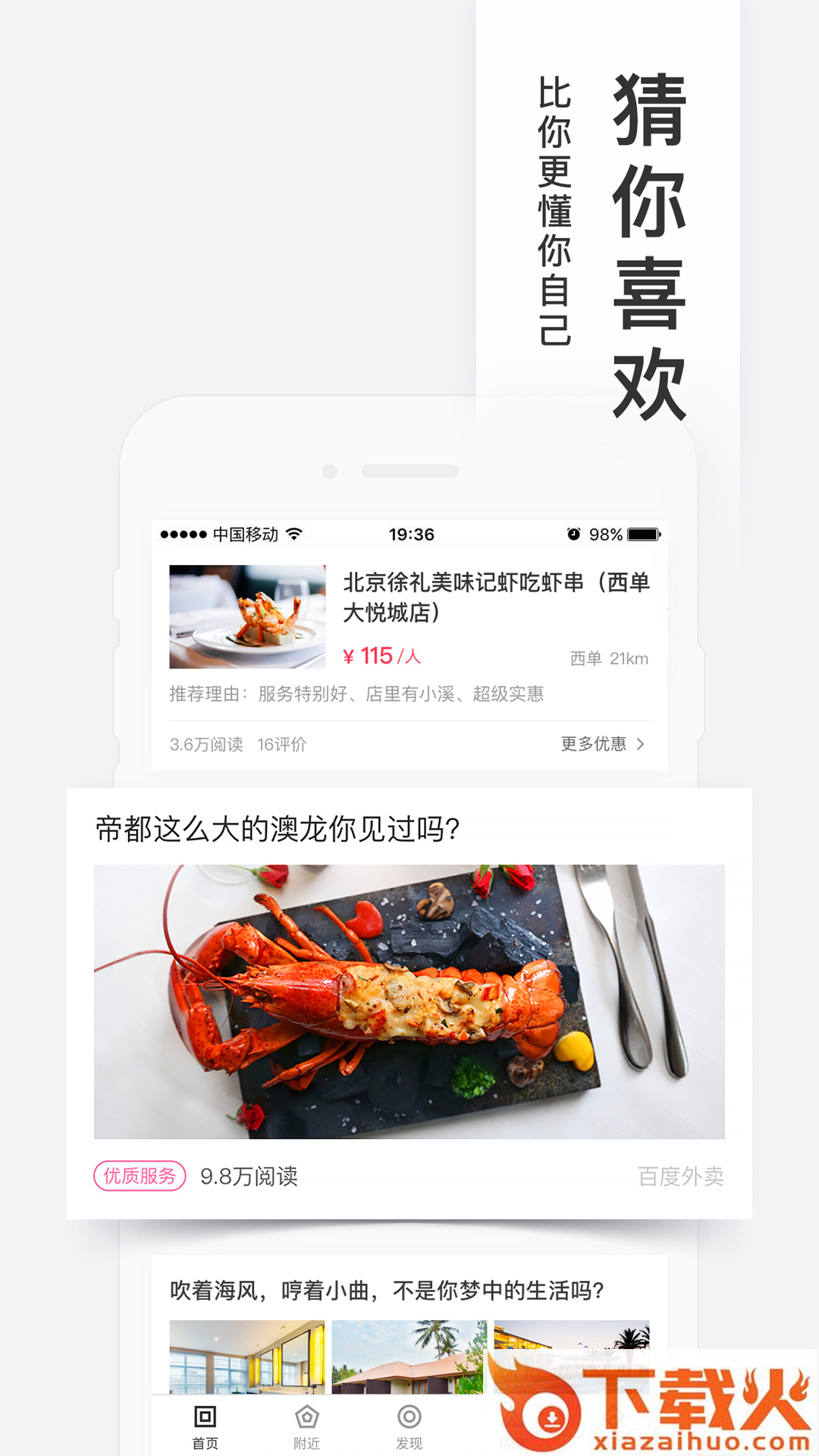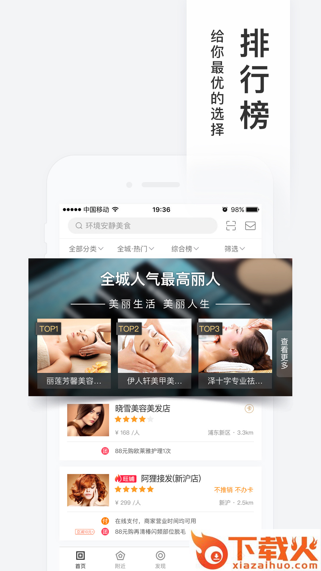查找:地图/列表双重模式,搜罗身边美食、电影、酒店、KTV等团购;