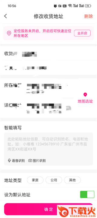 5、最后点击过后在修改收货地址的页面中修改好内容之后点击【确定】即可;