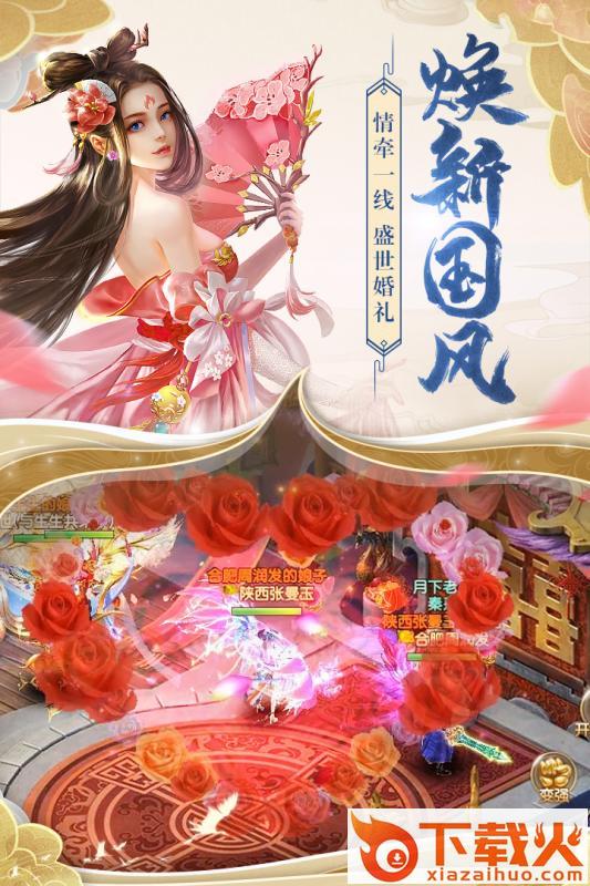 2、自由交友团结互助,浪漫情缘结伴相恋打造婚礼,独特夫妻副本双人挑战浪漫修仙;