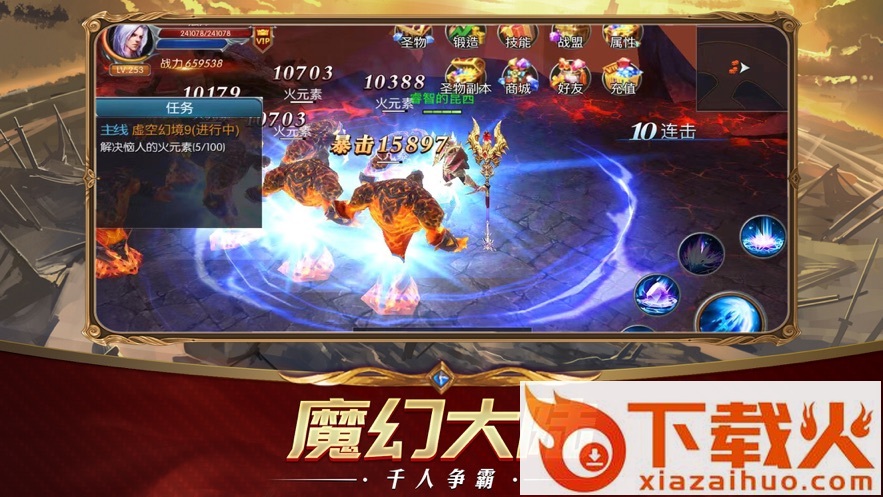 魔塔、王城夺宝、永恒之战、公会守护、千人混战等多种激情战斗副本,物品超高几率掉落,热血沸腾,杀boss爆神装!