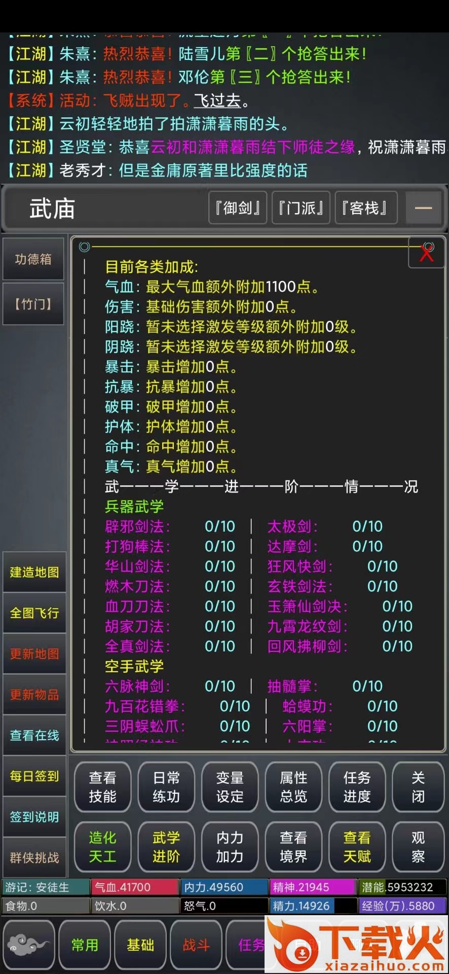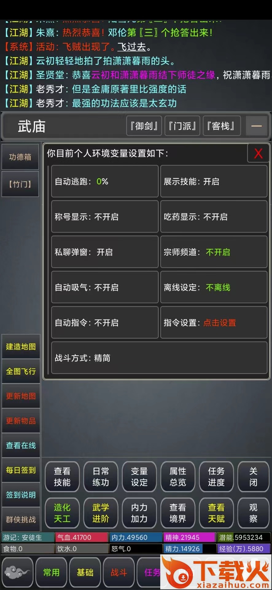 新江湖MUD是个能够多人联机的文字武侠mud游戏,通过生动的描述,有趣的剧情内容,为玩家们展示一个宏大的侠客世界,能够自由独创武侠秘籍,还能开创门派来进行授课和升级。
