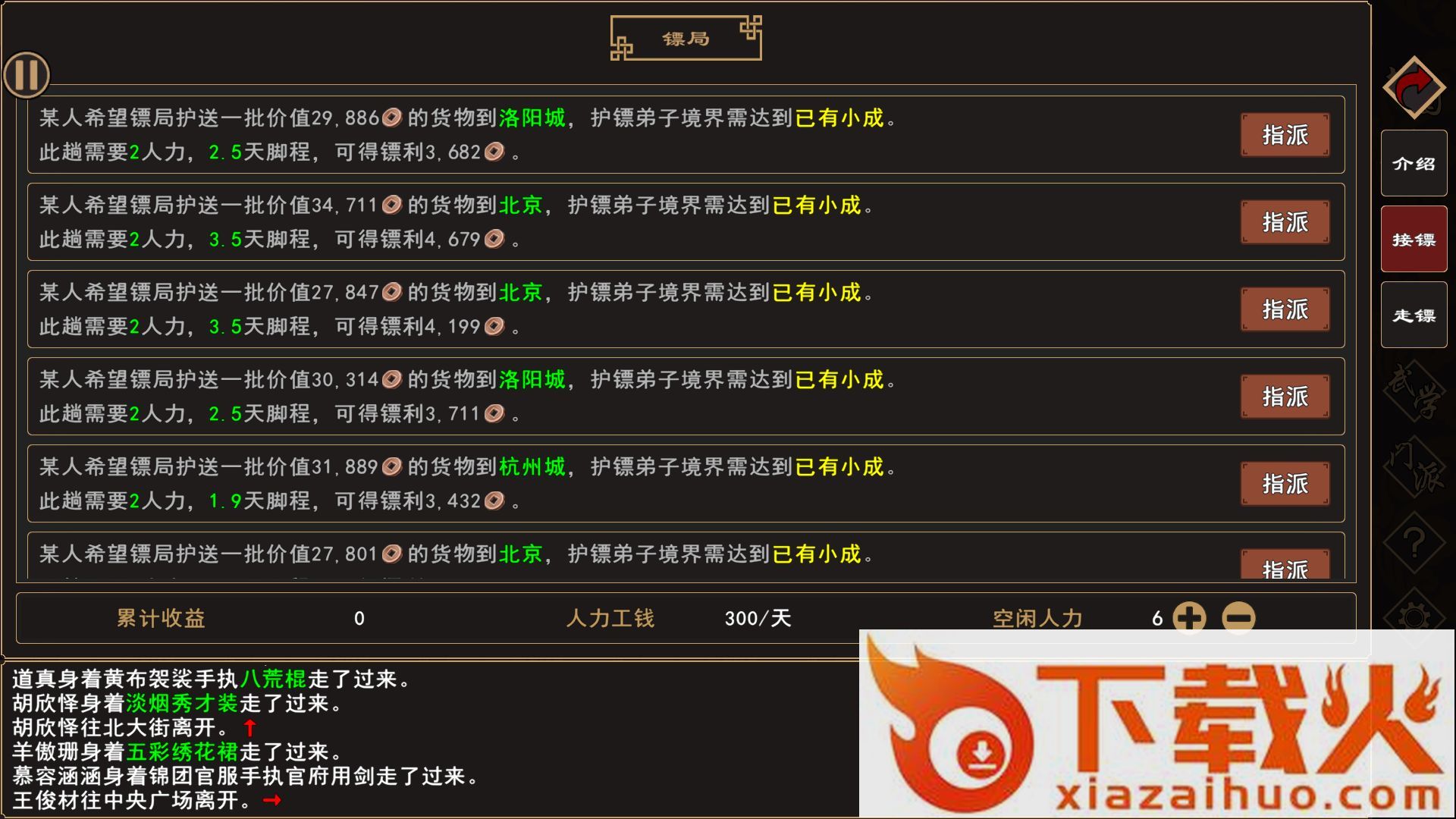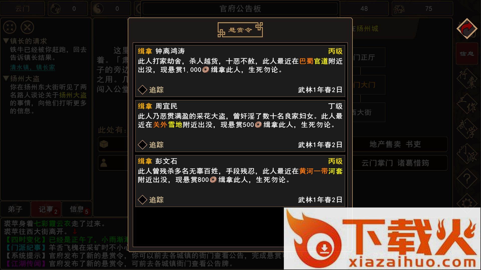 7、游历,控制掌门和工具人逛城镇,行动就是走格子,NPC都可以偷、杀,有意义的互动很少,基本都是无用的路人…