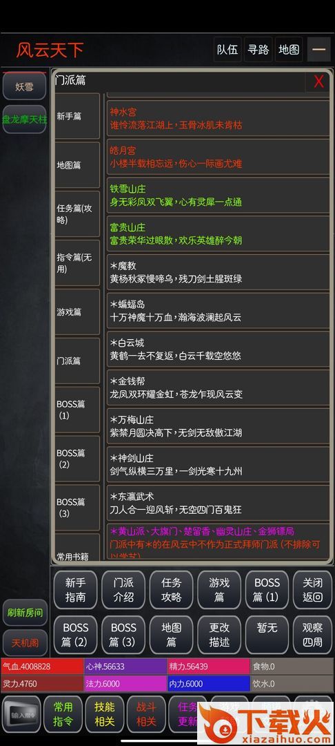 风云绝世是一个以古龙武侠世界为蓝本的mud游戏,在这里也能游历江湖,体验那些熟悉的招式,武器,作为一个闯入武林江湖的侠客,完全可以自由选择道路,不管是好人还是恶人,总有你的一席之地。