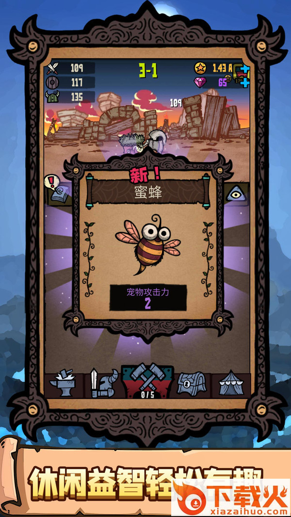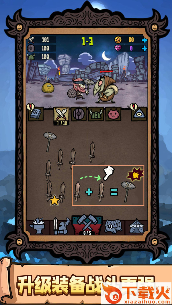 合成两个相同装备来提升勇士等级,以此对抗源源不断的强大怪物军团。